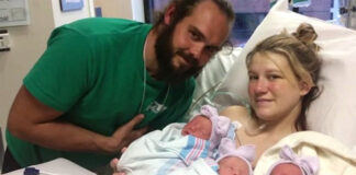 Mamá y papá posan para una foto. Pero notan algo extraño en las caras de sus bebés.